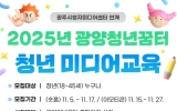 광양 코리아피플뉴스2025. 11.06[코리아피플뉴스]광양청년꿈터가 ‘찾아가는 청년 미디어교육’에 참여할 수강생을 선착순으로 모집한다. ‘찾아가는 청년 미디어교육’은 청년들의 미디어 활용 역량 강화를 목표로, 광양청년꿈터와 광주시청자미디어센터가 협력해 추진하는 사업이다. 시청자미디어재단 광주시청자미디어센터는 국민 누구나 다양한 미디어 혜택을 누릴 수 있도록 지원하는 미디어 전문 기관으로, 이번 협력을 통해 지역 청년들에게 전문적이고 접근성 높은 교육을 무상으로 제공할 계획이다. 교육 과정은 ▲‘팔로우를 부르는 숏폼 만들기’(2차시)와 ▲‘이모티콘 제작 첫걸음’(1…