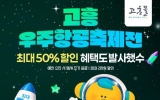 고흥 코리아피플뉴스2026. 04.30[코리아피플뉴스]고흥군이 운영하는 공식 온라인 쇼핑몰 ‘고흥몰’이 고흥 우주항공축제를 맞아 5월 1일부터 7일까지 특별기획전 ‘혜택도 발사했수!’를 운영한다. 이와 함께 우주항공축제 행사장 내 고흥몰 홍보부스에서는 고흥 대표 농산물인 쌀을 특별가로 예약 주문받는 현장 프로모션도 함께 진행한다. 방문객들은 현장에서 파격적인 할인 가격으로 예약 구매할 수 있으며, 갓 도정한 신선한 쌀을 무료배송으로 받아볼 수 있다. 이번 기획전은 고흥을 찾는 관광객과 전국 소비자들에게 지역 우수 농수특산물을 합리적인 가격에 선보이기 위해 마련됐…