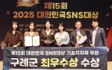 광주 코리아피플뉴스2025. 10.16[코리아피플뉴스]전남 구례군이 10월 16일, 한국프레스센터 국제회의장에서 열린 ‘제15회 2025 대한민국 SNS대상’시상식에서 기초지자체(군) 부문 최우수상을 수상했다. 대한민국 SNS대상은 (사)한국소셜콘텐츠진흥협회가 주최하며 공공기관과 기업의 소셜미디어 운영 우수 사례를 선정해 시상하는 국내 대표 SNS 관련 어워즈다. 구례군은 유튜브, 인스타그램, 페이스북, 블로그, 카카오톡 채널 등 다양한 SNS 플랫폼을 활용해 군정 소식을 효과적으로 알리고, 군민 및 외부와의 소통을 강화한 점이 높은 평가를 받았다. 특히, 유튜브…