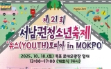 목포 코리아피플뉴스2025. 10.14[코리아피플뉴스]제21회 서남권청소년축제가 ‘유스(YOUTH)토피아 in MOKPO’를 주제로 오는 10월 18일(토) 오후 1시부터 5시까지 목포 로데오광장 일대에서 열린다. 이번 행사는 목포시가 주최, 서남권청소년축제추진위원회가 주관, 전라남도교육청이 후원하며, 전남 서남권 청소년과 청소년지도자, 시민 등 1,000여 명이 참여할 예정이다. 축제는 식전공연과 ▲경연프로그램(StageON) ▲체험부스운영(PlayON) ▲참여형 프로그램(7종) 등 다채로운 내용으로 진행된다. 식전공연에서는 목포백련초등학교 6학년 임사랑 학생의…