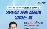 영암 코리아피플뉴스2025. 10.12[코리아피플뉴스]영암군이 10월16일 오후 2시 청소년센터에 개그맨이자 방송인인 고명환 씨를 초청해 군민아카데미 제5회 공개특강을 개최한다. 군민아카데미는 영암군민 삶의 질 향상과 평생학습 문화 확산을 위해 운영 중인 강연 프로그램. 장가·강연가로서도 왕성한 활동을 이어오고 있는 고 씨는, 일과 삶의 즐거움을 알리며 전국 각지에서 청중들과 만나고 있다. 이번 영암군민아카데미에서는 ‘365일 가슴 설레며 일하는 법’을 주제로 누구나 일상에서 열정을 유지하고 스스로 동기를 부여하는 방법을 나눌 예정이다. 공개특강은 영암군…