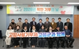 광주 코리아피플뉴스2026. 02.02[코리아피플뉴스]고흥군은 지난 30일 군청 팔영산홀에서 2026년 첫 ‘착한 기부의 날’ 행사를 열고, 지역사회 나눔 문화 확산을 위한 뜻깊은 자리를 마련했다. 이번 행사에는 고향사랑기부, 사회복지공동모금, 교육발전기금, 출산가정축복꾸러미 후원금 등 4개 분야에서 9개 팀, 15명의 기부자가 참여해 총 2천여만 원을 기탁하며 새해 첫 따뜻한 나눔을 실천했다. 행사는 개회에 이어 기부자 소개, 군수 인사말, 환담, 기부금 기탁 및 기념촬영 순으로 진행됐으며, 기부자들의 소중한 뜻을 함께 나누는 시간으로 채워졌다. 공영민 군수는 …