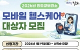 영암 코리아피플뉴스2026. 01.23[코리아피플뉴스]진도군은 지난 19일부터 군민들이 건강한 생활 습관을 형성할 수 있도록 ‘2026년 모바일 헬스케어 1기’ 대상자 55명을 선착순으로 모집하고 있다. 모바일 헬스케어 사업은 진도군보건소의 전담 인력(코디네이터, 간호사, 영양사, 운동 전문가)이 대상자의 스마트폰 앱과 활동량계(스마트워치) 건강 데이터를 바탕으로 영양, 신체활동, 건강 등의 영역별 건강 정보를 제공하며 상담하는 맞춤형 건강관리 사업이다. 진도군 보건소는 오는 2월에 초기검진을 마치고, 3월부터 6개월 동안 서비스를 제공할 예정이다. 모집 대상은 …