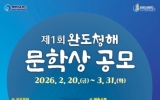 완도 코리아피플뉴스2026. 02.27[코리아피플뉴스] ‘치유의 섬’ 완도군에서는 많은 사람들이 문학의 향기로 마음을 치유할 수 있도록 ‘제1회 완도 청해 문학상’ 공모전을 연다. 문학상 공모전은 완도가 지닌 ‘치유’를 문학의 영역으로 확장해 완도의 가치를 알리고 완도 문학의 저변을 넓히기 위해 마련됐다. 특히 공모전이 첫 회임에도 총 상금이 4,100만 원에 달하는 등 전국 규모의 수준으로 첫발을 내디딘다. 공모는 세 부문으로 진행된다. 일반부(20세 이상 국민) 참가 요건은 2년 이내에 출간(미 수상)한 시 또는 소설 1권, 청소년부(19세 이상 …