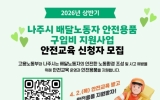 장성 코리아피플뉴스2026. 03.19[코리아피플뉴스]전남 나주시가 교통사고 위험에 노출된 배달노동자의 안전을 강화하고 사고 예방을 위한 지원에 나선다. 나주시는 배달노동자의 안전한 노동환경 조성을 위해 배달노동자 안전용품 구입비 지원사업을 추진하고 이륜차 교통안전교육을 실시한다고 18일 밝혔다. 시는 2025년에 이어 2026년에도 고용노동부 ‘취약노동자 일터개선 지원사업’ 연장 심사 선정됨에 따라 상반기 사업을 추진하며 나주시에 거주하는 배달노동자 20명을 대상으로 안전용품 구입비를 1인당 최대 20만 원까지 지원한다. 이번 사업은 배달 과정에서 발생할 수 있…
