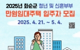 광주 코리아피플뉴스2025. 06.09[코리아피플뉴스]화순군은 14일 청년 및 신혼부부를 위한 '2025년『만원 임대주택』 입주 신청자를 4월 21일부터 5월 4일까지 2주간 정부24를 통해 신청·접수한다고 밝혔다. 『만원 임대주택』은 화순군이 지역 아파트를 임대해 신혼부부와 청년들을 대상으로 월 1만 원의 임대료만 받고 재임대하는 사업이다. 사회 초년생인 청년과 신혼부부의 주거비 부담을 줄이고, 정주 여건을 향상하기 위한 주거정책이다. 지난 2년간 총 200호 모집에 총 2,107명의 청년과 신혼부부가 지원하여 2023년 18:1, 2024년 12:1의…