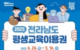 고흥 코리아피플뉴스2025. 04.24[코리아피플뉴스]전라남도와 전남인재평생교육진흥원은 24일부터 5월 14일까지 저소득층 및 장애인 성인을 대상으로 2025년 전라남도 평생교육이용권(평생교육바우처) 1차 대상자를 모집한다고 밝혔다. 평생교육이용권은 사회·경제적 여건에 따른 평생교육 참여 격차를 완화하고 평생교육 기회를 확대하기 위해 교육비를 지원하는 제도다. 지원 대상은 저소득층 성인(19세 이상 기초생활수급자·차상위계층 우선), 19세 이상 등록장애인, 65세 이상 노인, 30세 이상 디지털 관련 평생교육 수강 희망자 등이다. 이번 1차 모집에서는 주민등록상 …