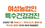 강진 코리아피플뉴스2026. 03.16[코리아피플뉴스]옹진군은 올해 처음으로 여성농업인의 건강권 보호를 위한'여성농업인 특수건강검진사업'을 본격 시행한다고 밝혔다. 이번 사업은 농작업으로 인해 근골격계 질환 등 직업성 질환에 취약한 여성농업인을 대상으로 건강검진 및 예방 상담을 지원하는 사업으로 여성농업인의 삶의 질 향상과 안정적인 영농 활동을 지원하기 위해 추진된다. 지원 대상은 옹진군에 거주하며 농업경영체에 등록된 짝수년도 출생의 51세부터 80세까지 여성농업인으로, 올해는 총 60명을 대상으로 실시되며, 검진 비용은 1인당 22만 원이며, 이 중 19만8천 …